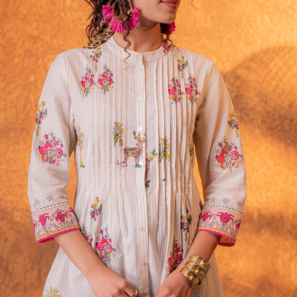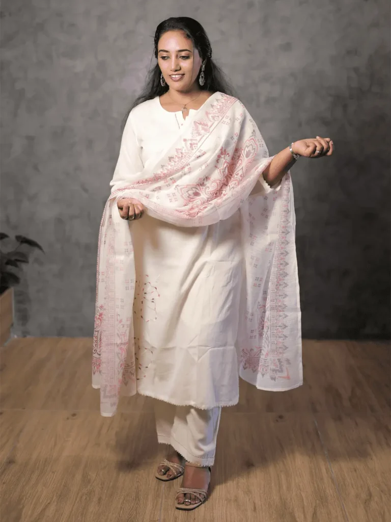 Comfy Salwar / White/ Pink Embridery - 3PC