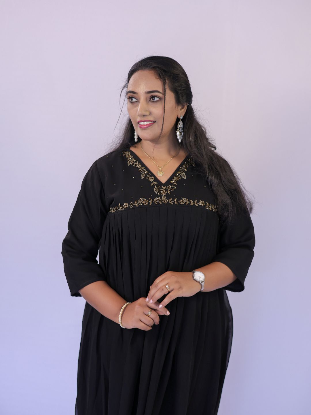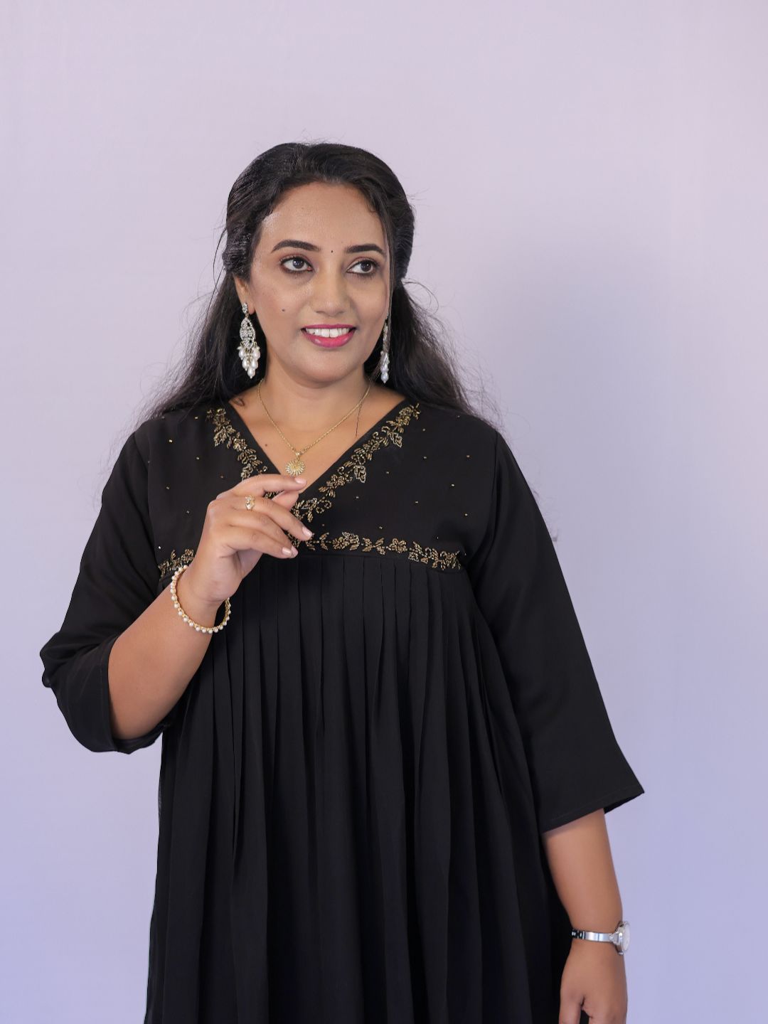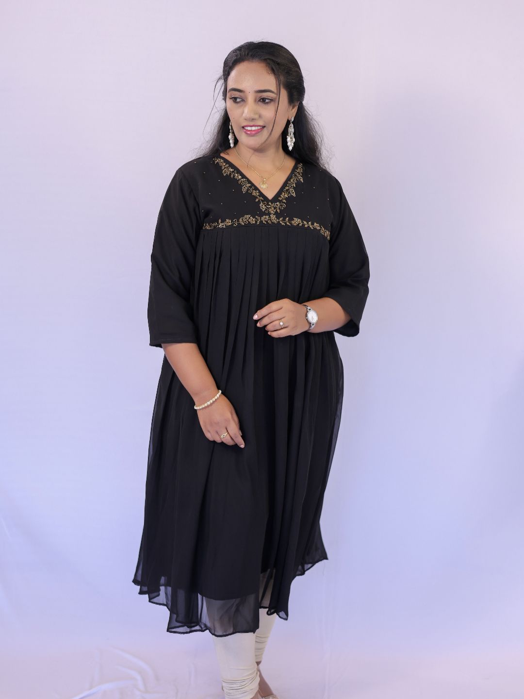 Premium Kurti in Georgette Fabric ,with embroidery near yoke provided with Lining. 3/4 th sleeves with lining. Offering Long-Lasting Comfort and Value for money. Perfect for Casual and Party Wear.