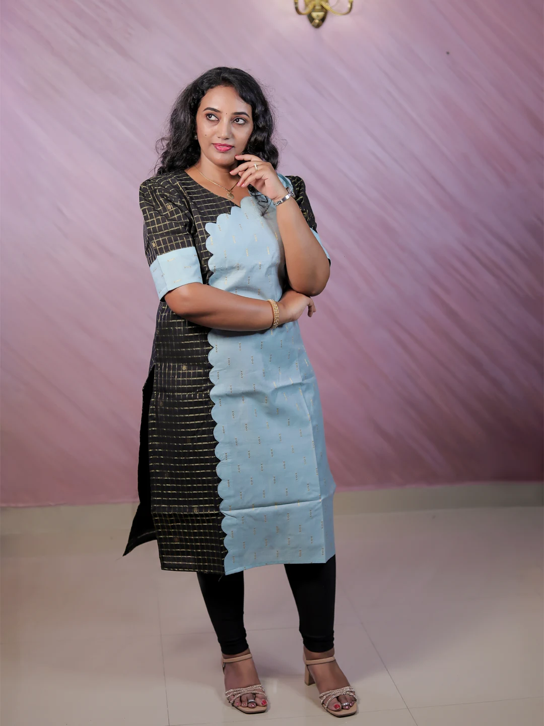 Premium Kurti Designed with Raw Silk Fabric and Cotton Lining, Offering Long-Lasting Comfort and Value. Ideal for Casual, Office, and Party Wear. Includes a Stylish Side Pocket.