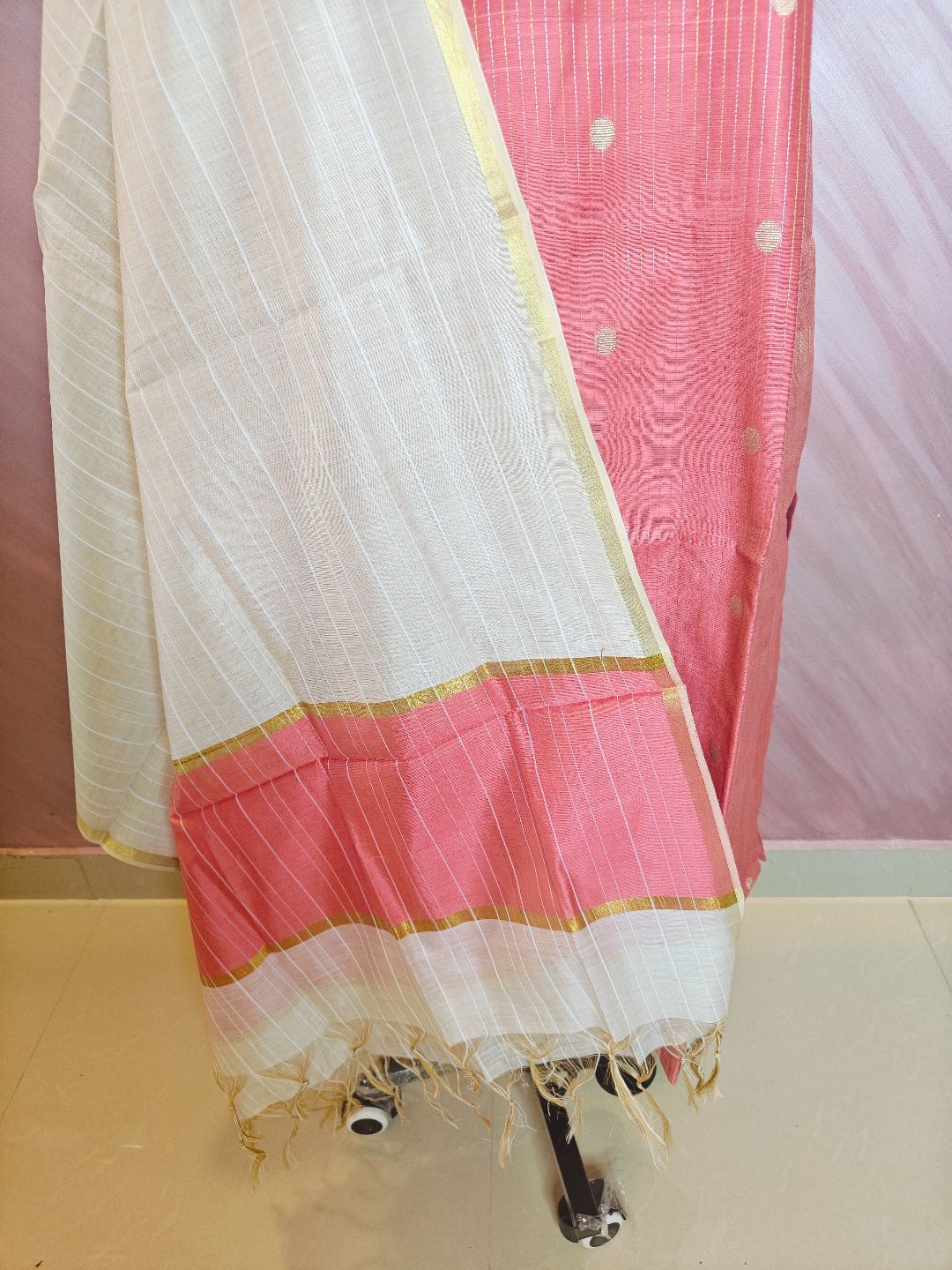 DUPATTA IN COTTON SILK WITH ZARI BORDER . DUAL SHADED AWSOME DUPATTA.