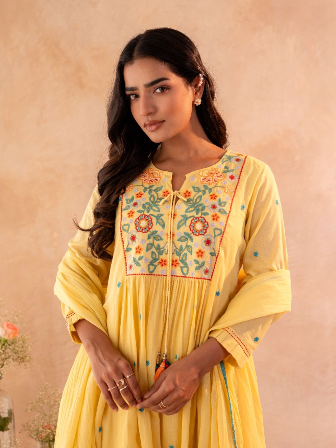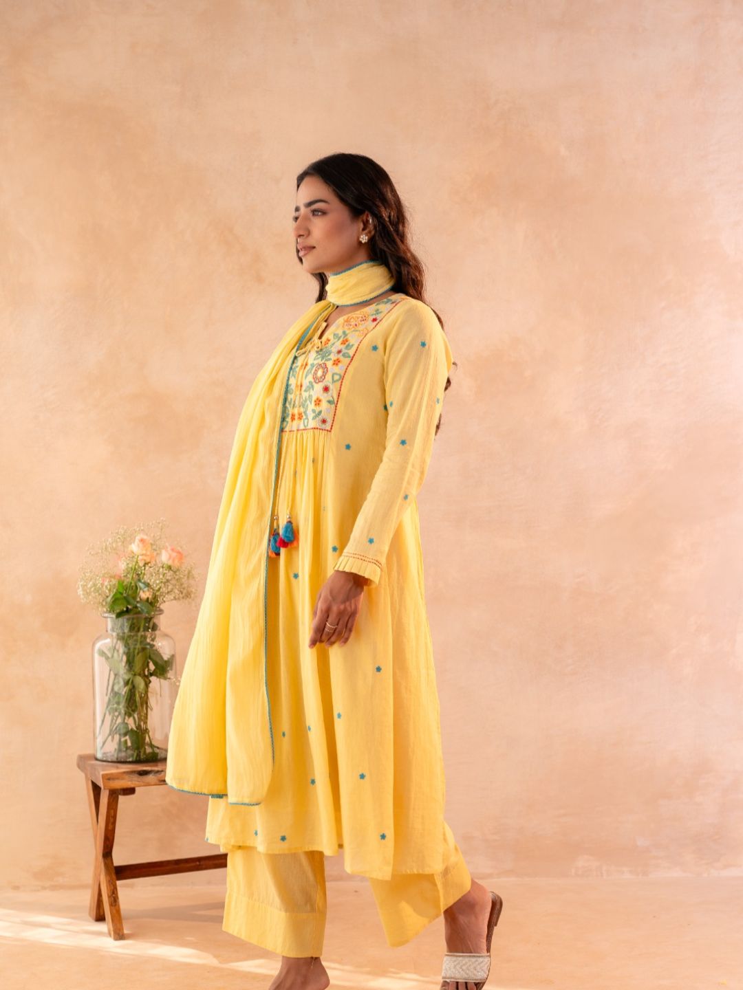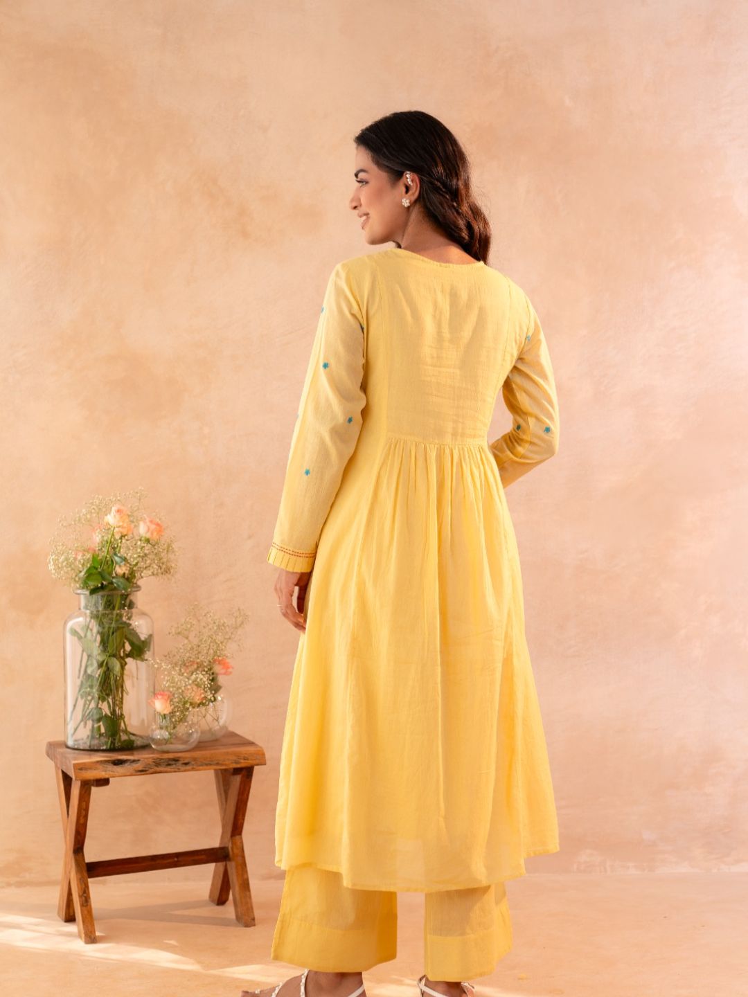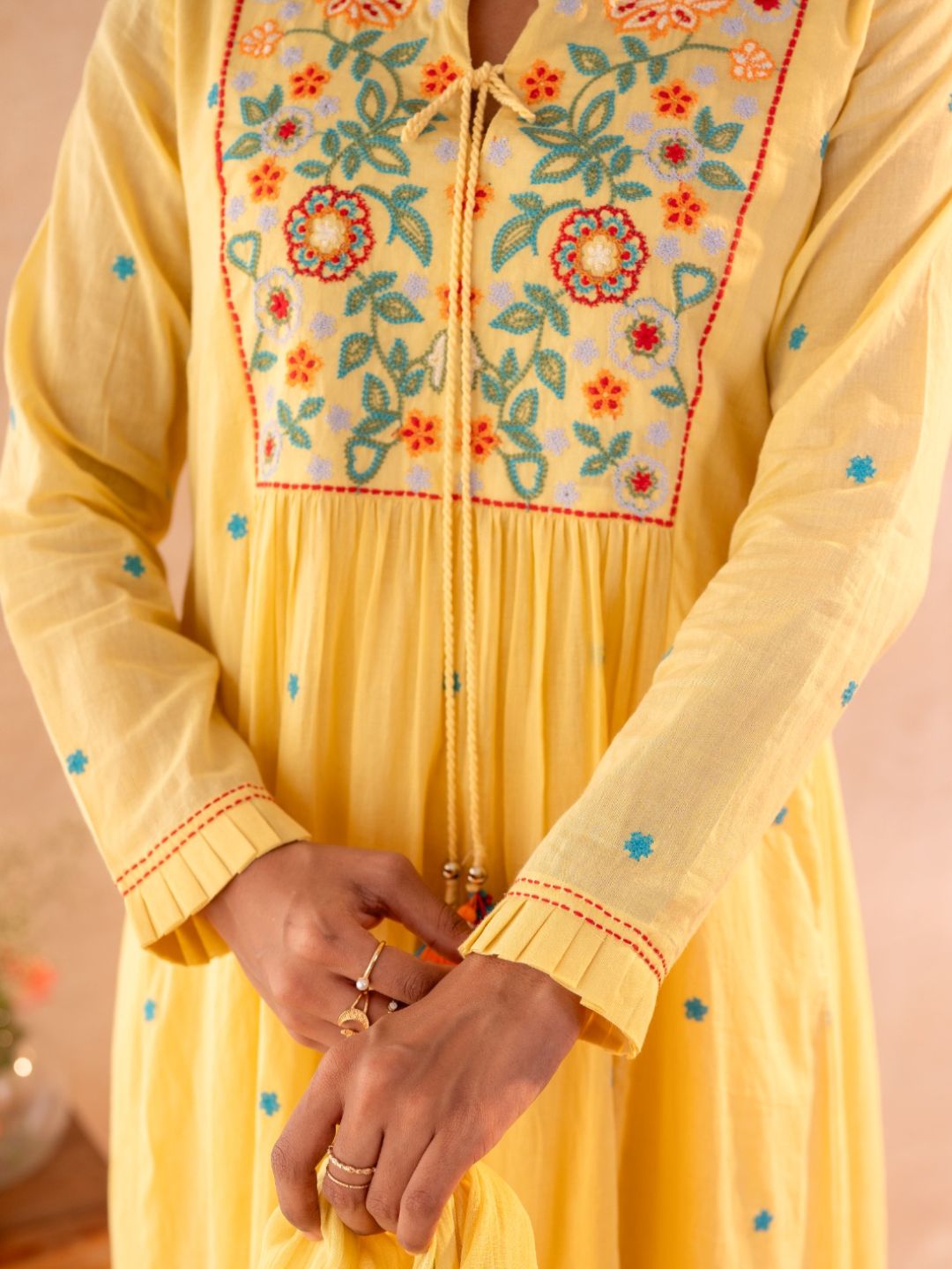 TOP: A-LINE TOP in Mul fabric with Lining, and body hugging feel, yet look elegant. Gud For people who are looking for pure cotton. . with simple neck patter and embroidery near yoke. Provided full length sleeves with uniqe design . very comfy for casual and office wear.