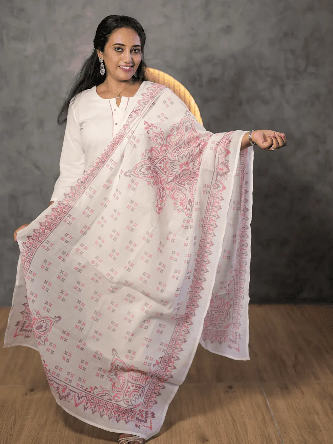 DUPATTA- Cotton printed in pink and multi colour combination.